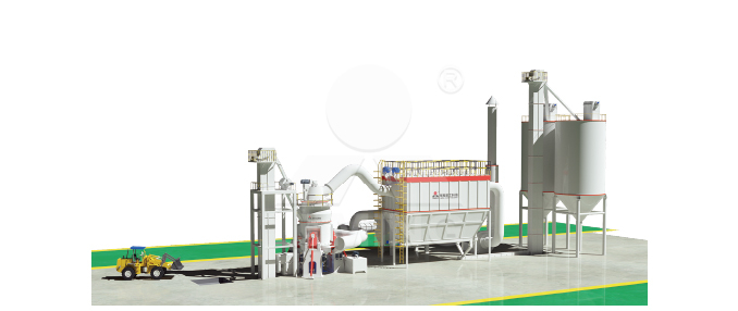 大塊物料經(jīng)顎式破碎機(jī)破碎到所需粒度后,由提升機(jī)送至儲(chǔ)料斗,再由皮帶機(jī)將物料均勻定量連續(xù)地送入MTW歐版磨的主機(jī)磨室內(nèi)進(jìn)行研磨。粉磨后的物料被風(fēng)機(jī)氣流送入選粉機(jī)進(jìn)行分級(jí),在選粉機(jī)葉輪的作用下,不符合細(xì)度要求的物料落入磨室內(nèi)重新碾磨,合格的物料則經(jīng)空氣斜槽進(jìn)入旋風(fēng)集粉器內(nèi),進(jìn)行分離收集,經(jīng)排料裝置排出即為成品粉體。