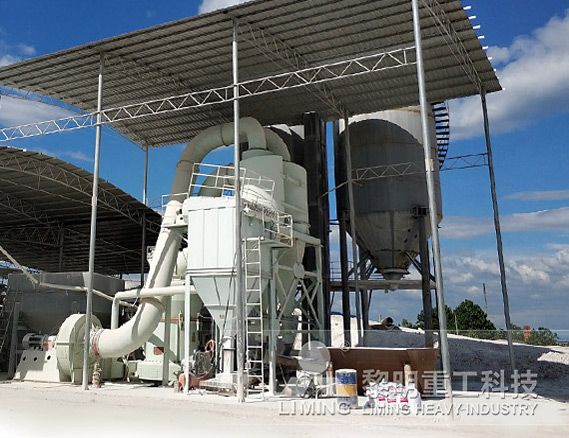 煅燒后的生石灰料由鏟車送入緩沖倉內(nèi),經(jīng)皮帶給料機均勻定量連續(xù)地送入MTW178G歐版磨磨室內(nèi)進(jìn)行研磨,接著再被風(fēng)機氣流送入選粉機進(jìn)行分級,在分析機的作用下,不符合細(xì)度要求的物料落入磨室內(nèi)進(jìn)行二次粉磨,合格的物料則通過氣流經(jīng)管道進(jìn)入旋風(fēng)集粉器內(nèi)進(jìn)行分離收集,后經(jīng)排料裝置排出即為成品。 該系統(tǒng)在封閉負(fù)壓狀態(tài)下運行,且配備有脈沖除塵器,符合國家的清潔環(huán)保標(biāo)準(zhǔn)。