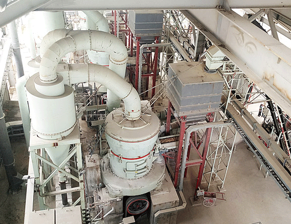 現(xiàn)場情況 大塊物料經(jīng)顎式破碎機破碎到所需粒度后,由提升機送至儲料斗,再由皮帶機將物料均勻定量連續(xù)地送入2臺MTW175歐版磨的主機磨室內(nèi)進行研磨。粉磨后的物料被風機氣流送入選粉機進行分級,在選粉機葉輪的作用下,不符合細度要求的物料落入磨室內(nèi)重新碾磨,合格的物料則經(jīng)空氣斜槽進入旋風集粉器內(nèi),進行分離收集,經(jīng)排料裝置排出即為成品粉體。